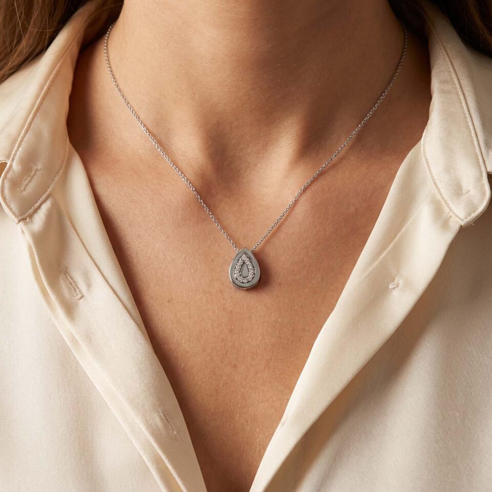 اختاري اليوم عقد قفل من الذهب الأبيض عيار 18 قيراطًا وأضيفي لمسة من الحب والأناقة إلى إطلالتك ✨