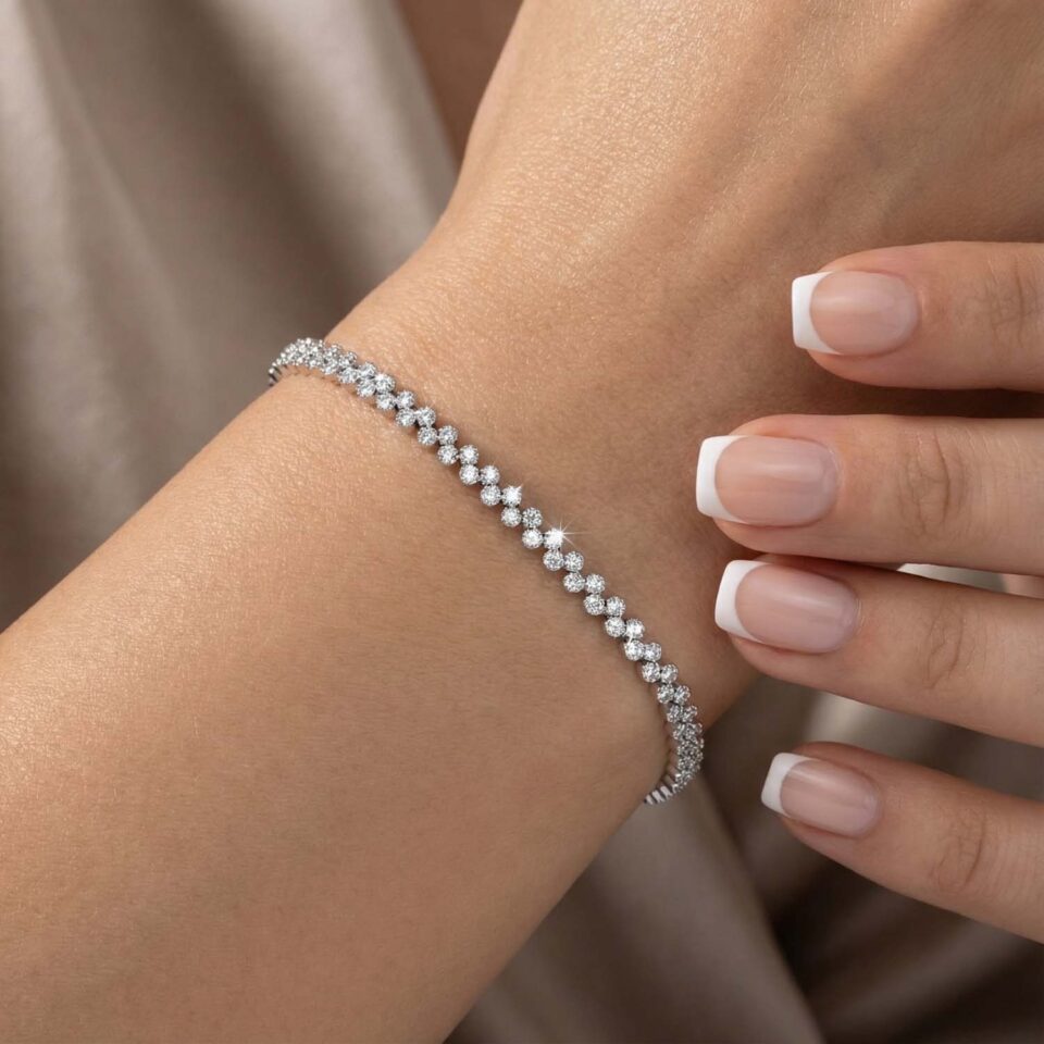 تألقي بإطلالة راقية مع اسوار ذهب ناعمه المصنوعة من الذهب الأبيض عيار 18 قيراطًا، تصميم يجمع بين الرقة والفخامة ليمنح معصمك لمسة أنثوية أنيقة في جميع المناسبات، سواء للخطوبة أو لحفلات الزفاف.