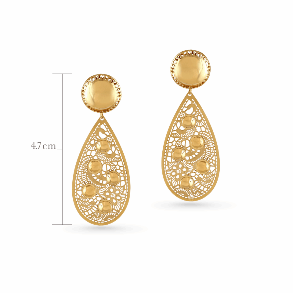 الذهب الأصفر عيار 18 قيراط يمنحك متانة ولمعانًا يدوم طويلًا، مما يجعل هذا حلق ذهب عيار 18 قطعة أساسية في مجموعة مجوهراتك.