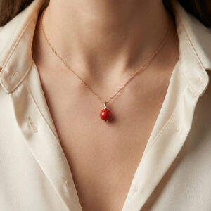 A pendant made of 18-karat rose gold with a colored gemstone to have a modern, eye-catching look.