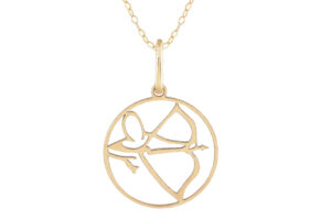 A pendant of yellow gold with the sign of Sagittarius for a personality with adventurers, risk-takers, and a sharp business and sports mentality.