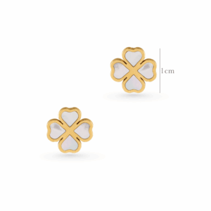 Elevate your elegance with our exquisite gold earrings adorned with delicate flowers of mother-of-pearl. These stunning pieces effortlessly blend sophistication and charm, making them the perfect jewelry for any occasion. The radiant gold beautifully complements the soft floral design, ensuring you stand out with grace and style. Indulge in a touch of luxury and let these earrings be the crowning jewel of your collection.