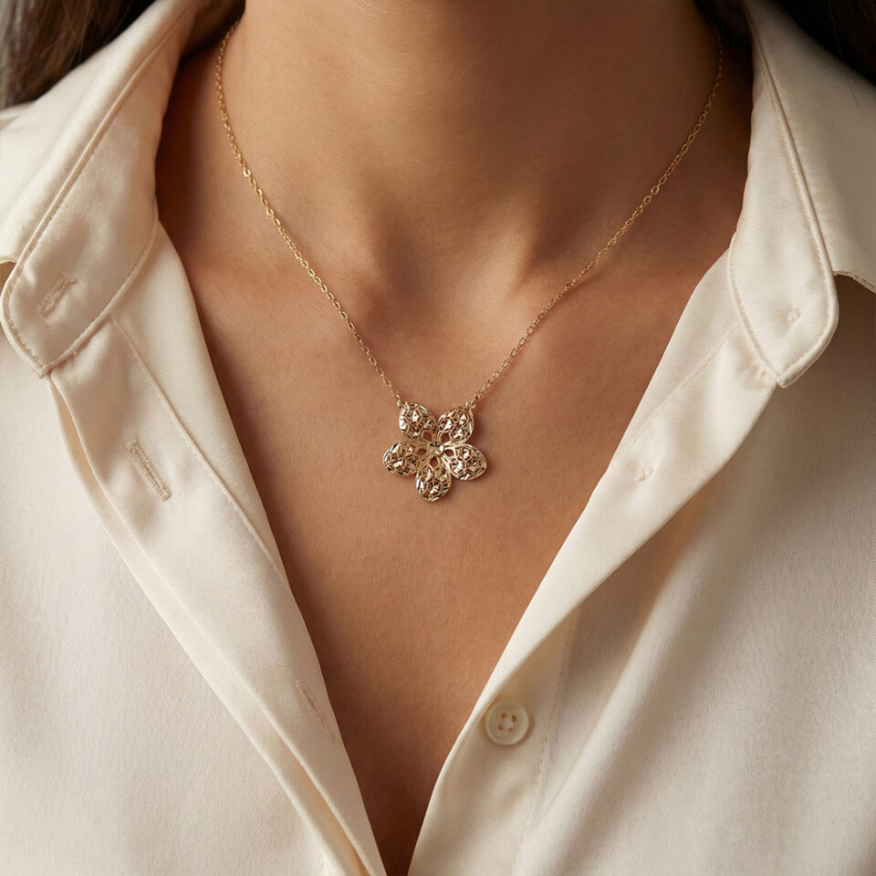 A pendant of white gold with the sign of Libra for a personality that has many creative ideas.