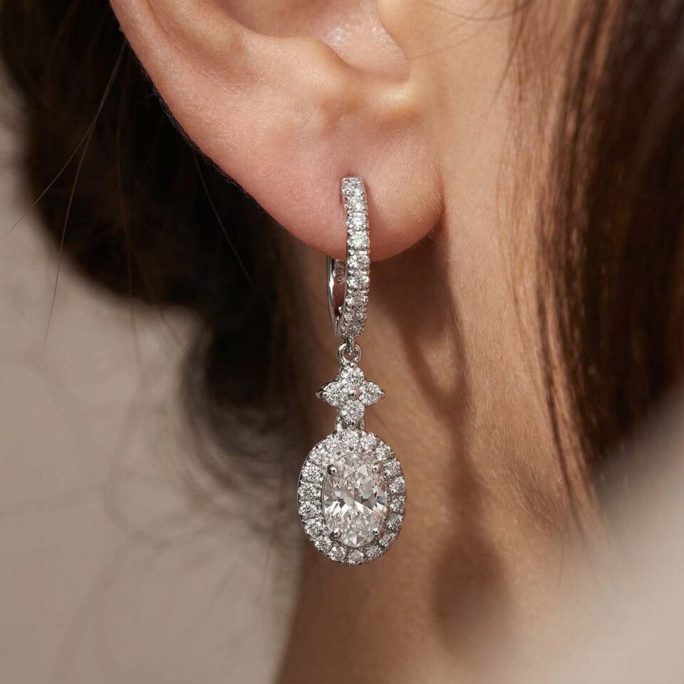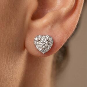 Earring with a fabulous design in the shape of a heart studded with small brilliant-cut diamond stones, with one large brilliant-cut diamond in the center, mounted on gold