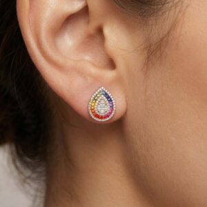 Elevate your elegance with an exquisite multi-colored sapphire stones tear-shaped earring a stunning masterpiece that captures the essence of luxury. Adorned with shimmering diamonds, this pendant radiates brilliance and sophistication, making it the perfect accessory for any occasion. Its unique design showcases a harmonious blend of colors, ensuring you stand out with grace and style. Indulge in the allure of this captivating piece and let it become a cherished addition to your jewelry collection.