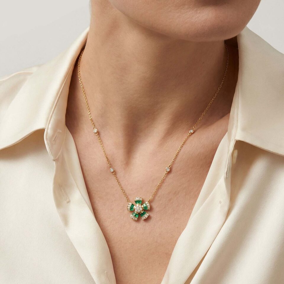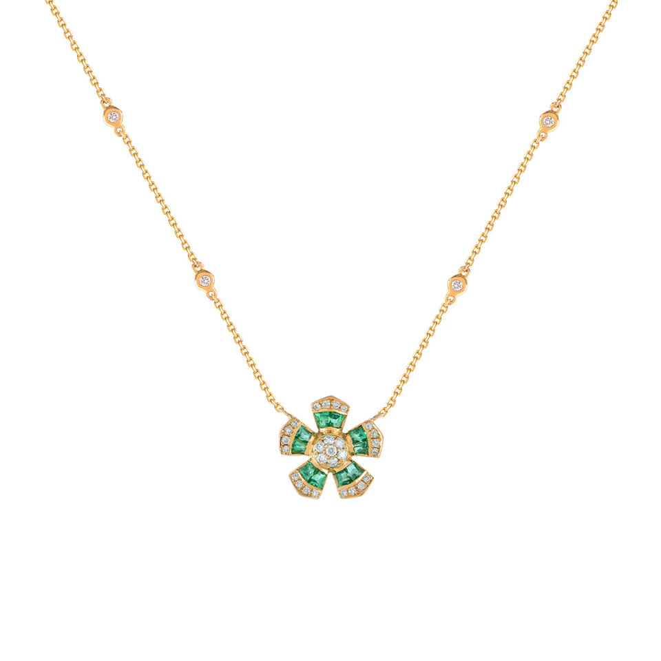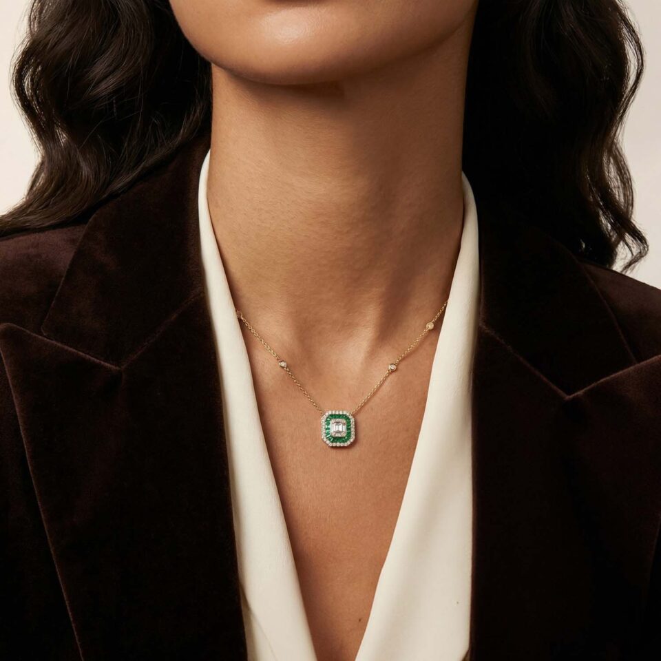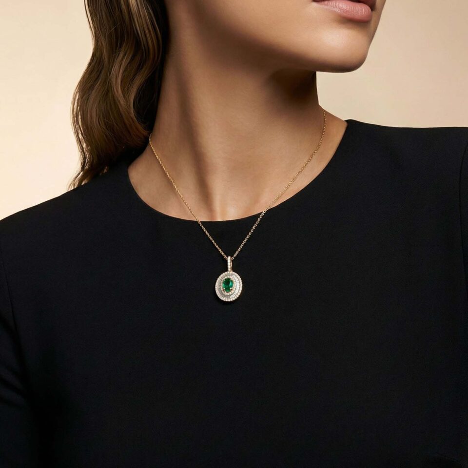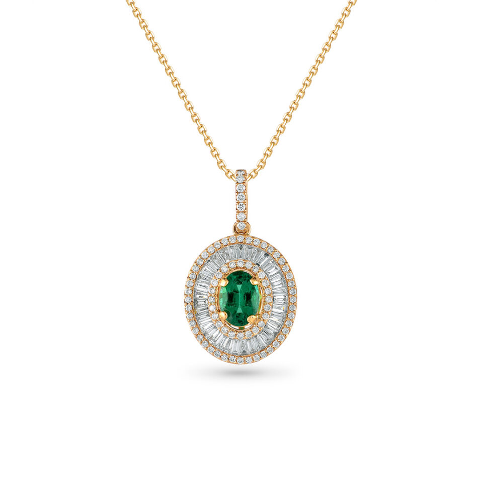 Diamond And Emerald Pendant of 18K Yellow Gold