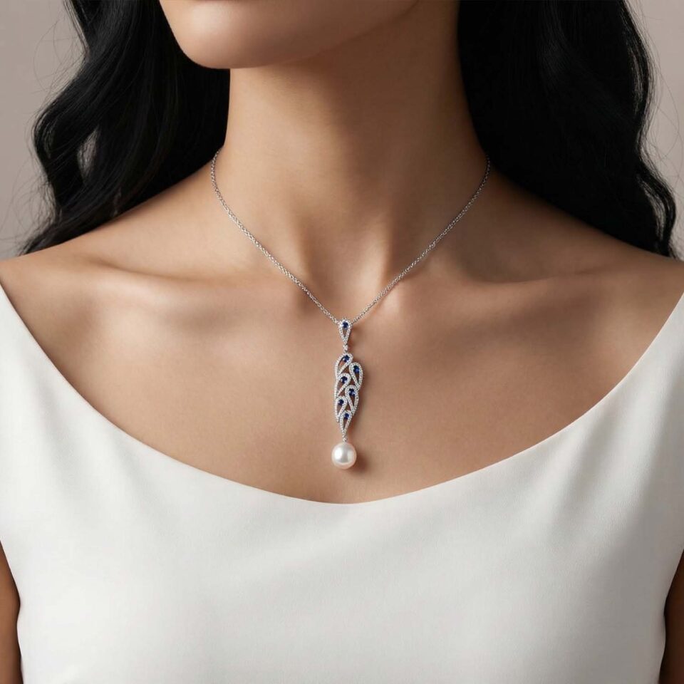 Diamond , Sapphire and Pearl Pindant of White Gold