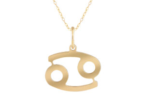 A pendant of yellow gold sign of Cancer for a spontaneous and innocent personality.